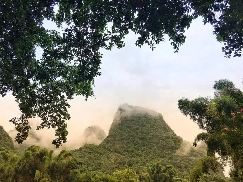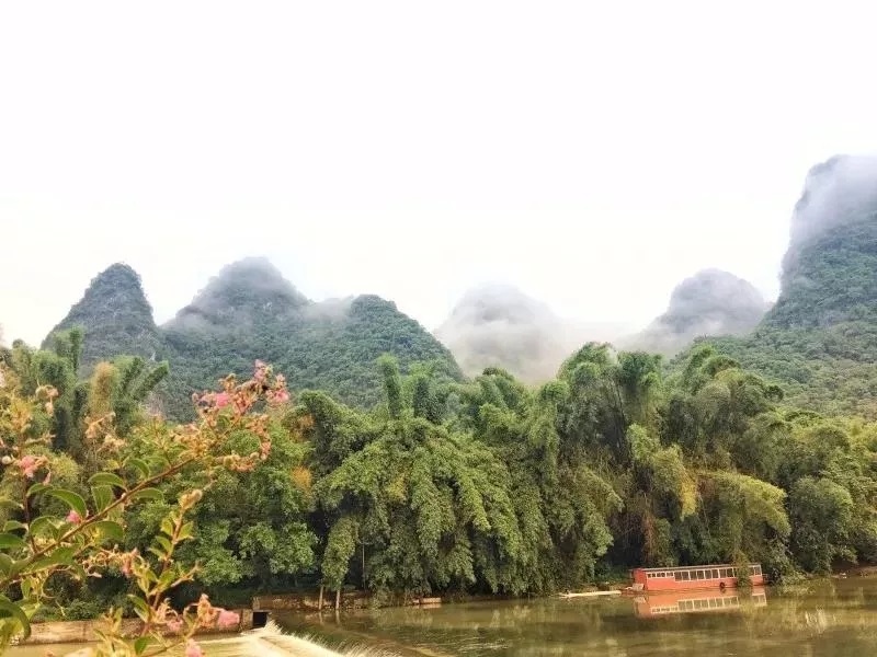 7:40AM兴坪古镇的美景,一座座山与山间环绕的雾气朦朦胧胧的诗意画境是桂林的特色。