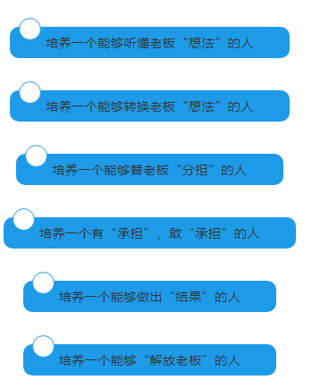 让老板走出去,花更多的时间去研究市场、研究产品方向。让操盘手具有自主经营意识思维的人,不管老板在与不在公司,都能让企业正常运营,推动处理跨部门的事情;为将来企业做大做好准备;使公司战略可真正的落地执行。通过训练,提升操盘手解决问题的能力、系统思维能力与实战运营能力。