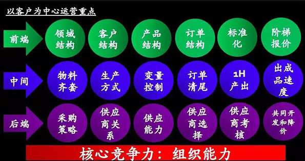 3、运营重点:企业的商业模式不一样,对企业内部运营的要求和重点也不一样,例如某中小型企业是以客户为中心的,该企业的运营重点总结如下图所示(企业阶段、规模、行业等存在差异,运营重点也会有差异):