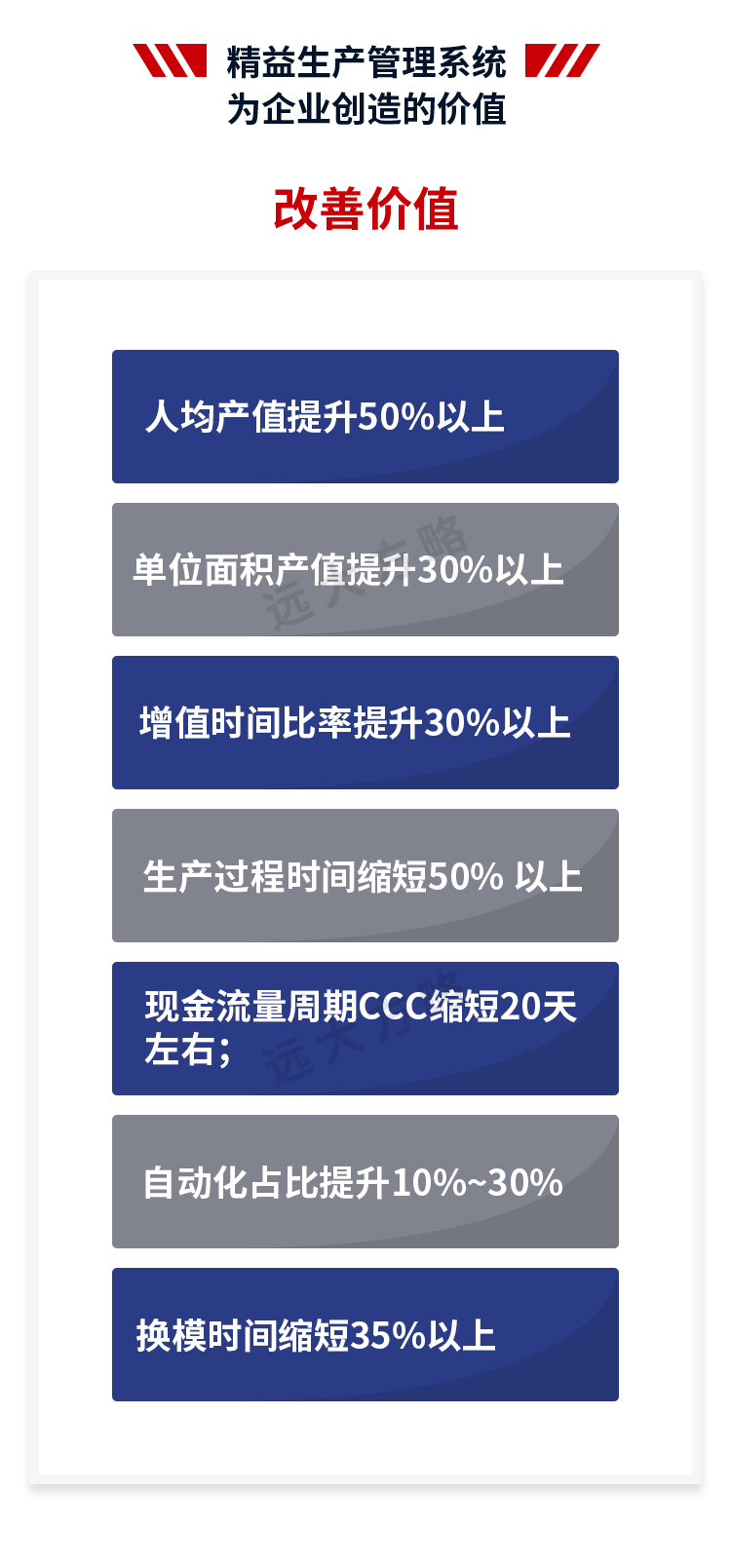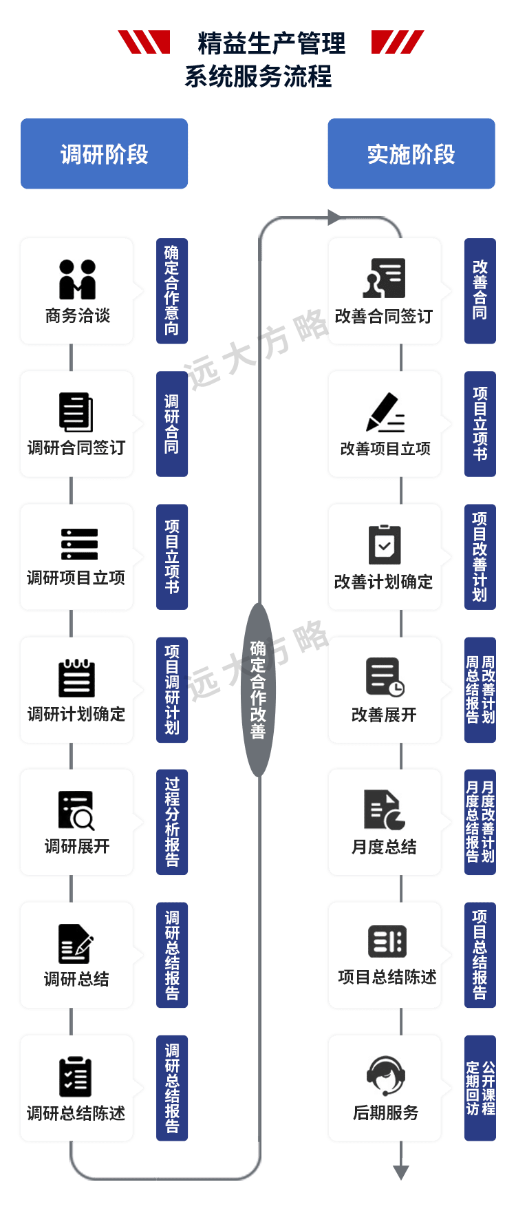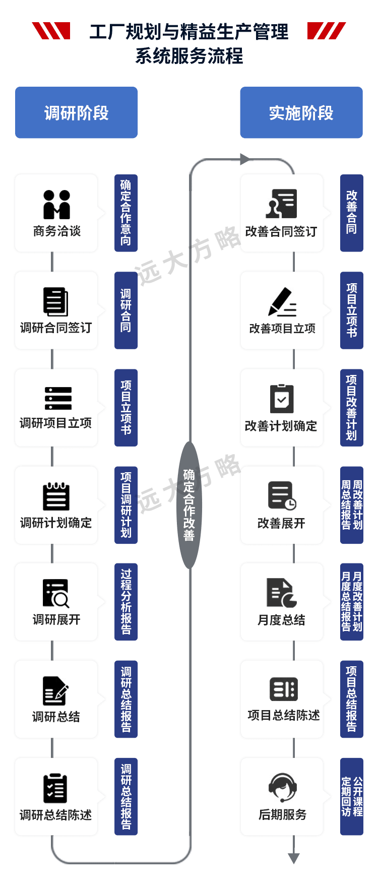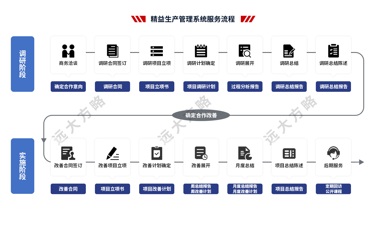 远大方略始终遵循不了解不理解企业的前提下绝不轻易下结论,正式制定改善方案前必须深入到业务一线了解和理解企业的运营情况。