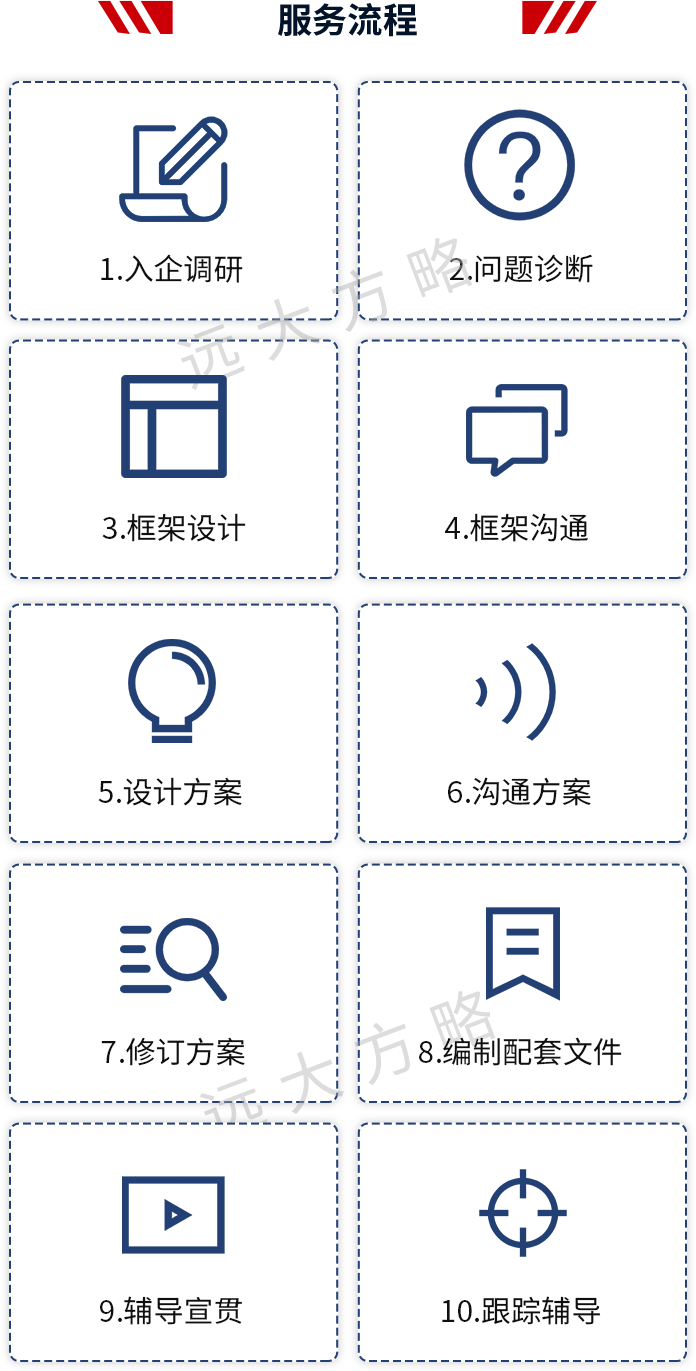 远大方略始终遵循不了解不理解企业的前提下绝不轻易下结论,正式制定改善方案前必须深入到业务一线了解和理解企业的运营情况。